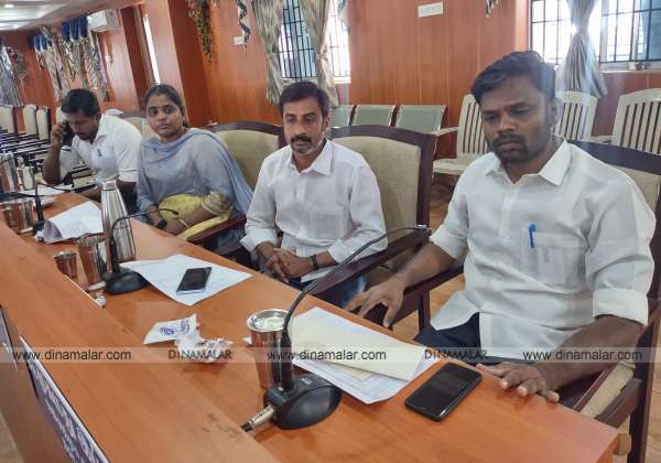 மேட்டுபாளையம் நகராட்சி மன்ற கூட்ட அரங்கில் உள்ளிருப்பு போராட்டத்தில் ஈடுபட்ட அதிமுக கவுன்சிலர்கள் சலீம், குரு பிரசாத், கலைச்செல்வி மற்றும் மீராமைதீன்.