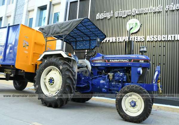 திருப்பூர், ஏற்றுமதியாளர்கள் சங்கம் சார்பில் மாநகராட்சிக்கு டிராக்டர் வழங்கப்பட்டது.
