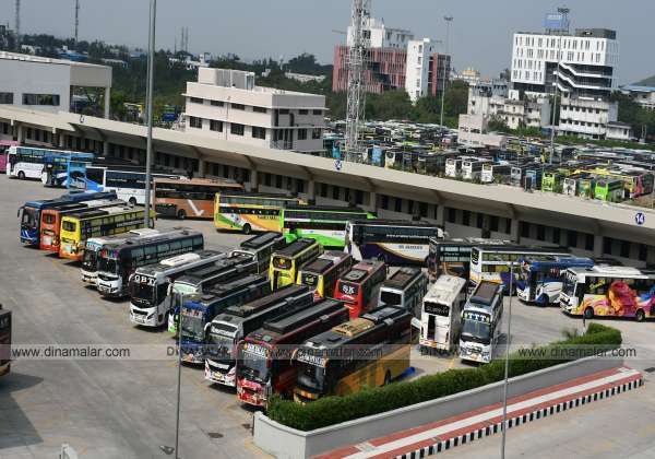 கிளாம்பாக்கம் பஸ் நிலையத்தில் நிறுத்திவைக்கப்பட்டுள்ள ஆம்னி பஸ்கள்.