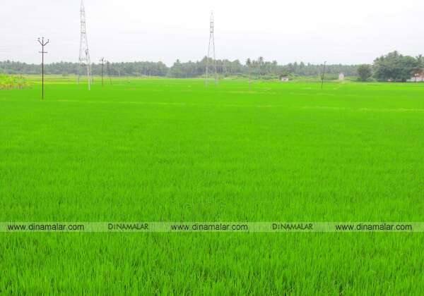 திண்டுக்கல் அருகே ஆத்தூர் பகுதியில் கண்ணுக்கு குளிர்ச்சியூட்டும் வகையில் பசுமையாக காட்சியளிக்கும் நெல் வயல்.