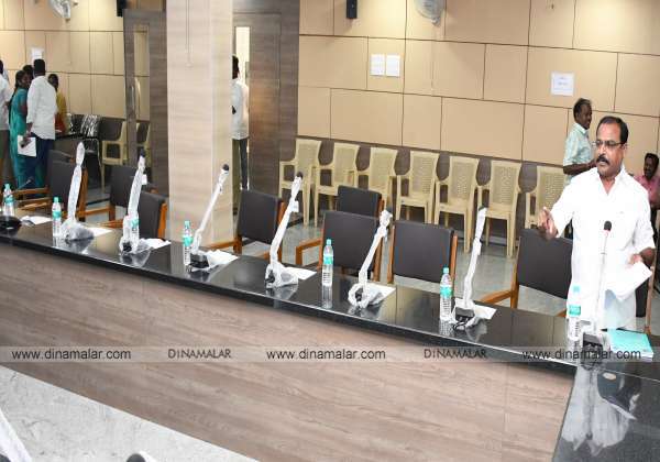 பொள்ளாச்சி நகராட்சி அலுவலகத்தில் சாதாரண கூட்டம் நடந்தது. இதில், தி.மு.க., வினர் வெளிநடப்பு செய்ததால், அ.தி.மு.க., கவுன்சிலர் அரங்கில் தனியாக நின்று பேசினார்.