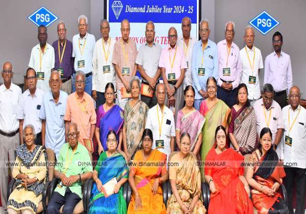 கோவை பி.எஸ்.ஜி., தொழில்நுட்ப கல்லூரியில் 1965-ல் படித்த முன்னாள் மாணவர்களின் சந்திப்பு நடந்தது. இதில் குரூப் போட்டோ எடுத்து கொண்ட முன்னாள் மாணவர்கள்.
