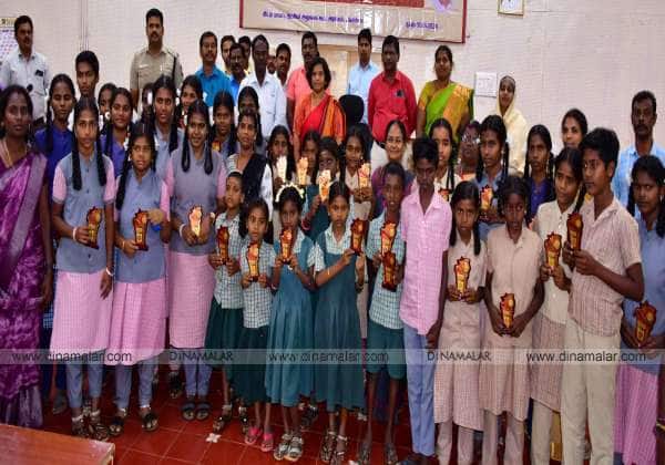 சிவகங்கை நடந்த மனிதநேய வார விழா நிறைவு விழாவில் பல போட்டிகளில் வெற்றி பெற்ற மாணவர்களுக்கு கலெக்டர் ஆஷா அஜித் கேடயங்களை வழங்கினார்.