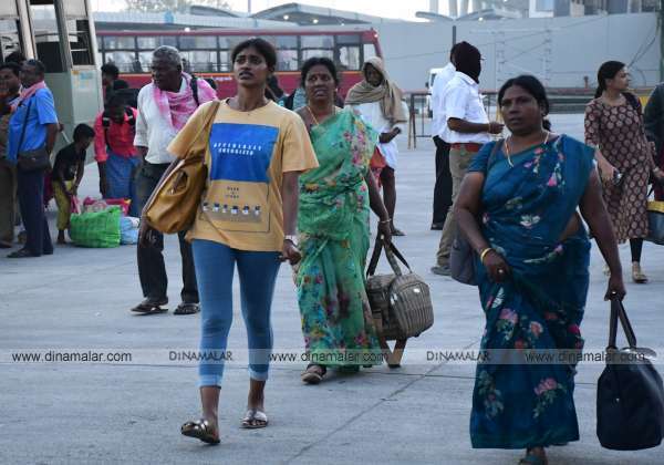 தென்மாவட்டங்களில் இருந்து சென்னைக்கு வந்த பயணிகள் கிளாம்பாக்கம் பேருந்து நிலையத்தில் இறக்கி விடப்பட்டனர் அங்கிருந்து சென்னை நகருக்குள் செல்ல நீண்ட தூரம் நடந்து வந்து பஸ் ஏறுகின்றனர்