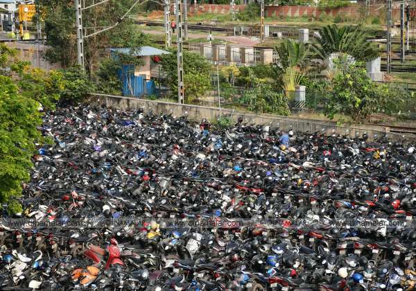 தாம்பரம் ரயில் நிலையத்தில் மேற்கூரை இல்லாத வாகன நிறுத்துமிடம். வெயிலில் காயுது ,மழையில் நனையுது என புலம்பி செல்லும் வாகன நிறுத்துபவர்கள்