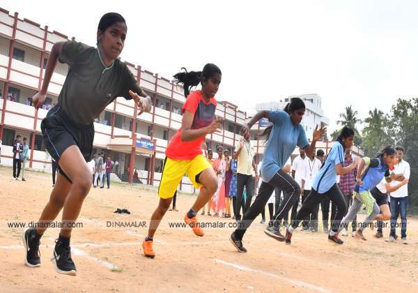 கோவை அரசு கலை அறிவியல் கல்லூரியில் நடந்த விளையாட்டு விழாவில் 100 மீட்டர் ஓட்டத்தில் திறமையை வெளிப்படுத்திய வீராங்கனைகள்.