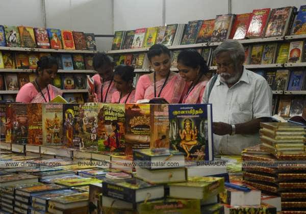 திருநெல்வேலி வர்த்தக மையத்தில், 7வது பொருநை நெல்லை புத்தக கண்காட்சியில் இடம்பெற்றுள்ள புத்தகங்களை ஆர்வமுடன் பார்வையிடும் புத்தக பிரியர்கள்.