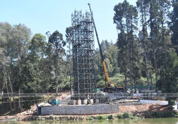 ஊட்டி படகு இல்லத்தில், சாகச விளையாட்டுக்கான பணிகள் நடைபெற்று வருகிறது.
