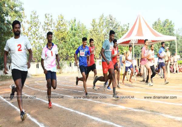 விழுப்புரம் ஆயுதப்படை மைதானத்தில் நடந்த இரண்டாம் நிலை காவலர்களுக்கான உடற்தகுதி தேர்வில் 1,500 மீட்டர் ஒட்ட தேர்வு நடந்தது.