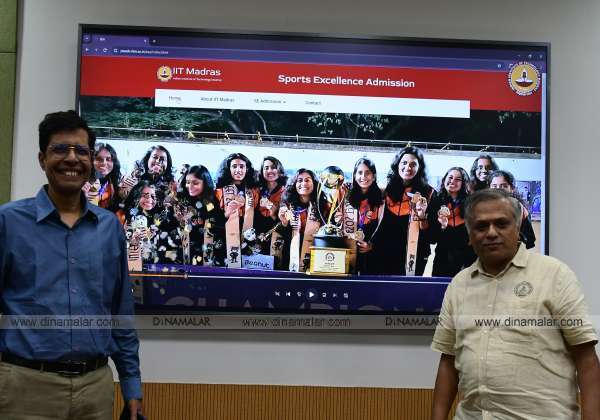 சென்னை அடையாறில் உள்ள ஐ.ஐ.டி., மெட்ராஸ் இளங்கலை படிப்புகளில் விளையாட்டுக்கான இணையதளத்தை ஐ.ஐ.டி., இயக்குனர் ( இடது ) காமகோடி அறிமுகப்படுத்தினார். உடன் பேராசிரியர் மகேஷ் பஞ்சாங்குனுலா