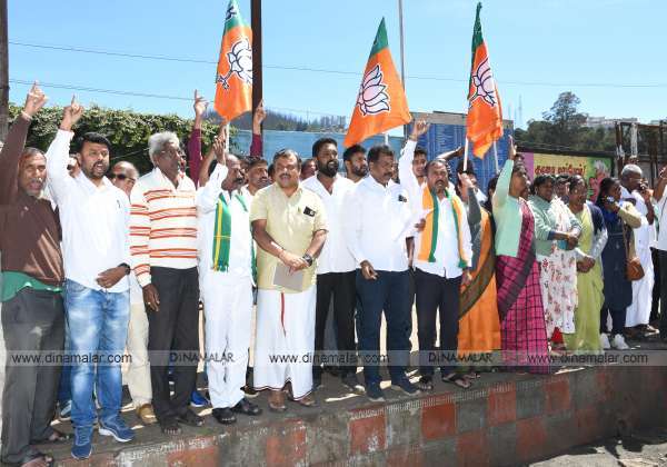 ஊட்டி பஸ்நிலையம் அருகே , பா.ஜ., வினர் மத்திய இணை அமைச்சர் முருகனை இழிவாக பேசிய தி.மு.க., எம். பி., டி.ஆர்.பாலுவை கண்டித்து ஆர்ப்பாட்டம் நடத்தினார்கள்.