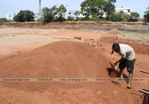 திருப்பூர் சிக்கண்ணா கல்லூரி பின்புறம், புதிய விளையாட்டு மைதானம் அமைக்கும் பணி நடந்து வருகிறது.