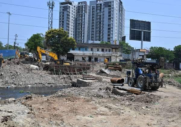 பாடி குப்பம் சாலை - கோயம்பேடு பூந்தமல்லி நெடுஞ்சாலையை இணைக்கும் வகையில் ஆற்றின் குறுக்கே உள்ள தரைப்பாலத்திற்கு மாற்றாக உயர்மட்ட பாலம் அமைக்கும் பணி நடந்து வருகிறது.