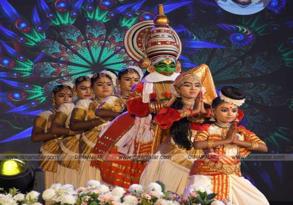 தேனி மேரி மாதா பப்ளிக் பள்ளியில் கவர்னர் ரவி பங்கேற்ற விழாவில் மாணவிகளின் கலை நிகழ்ச்சி நடந்தது.