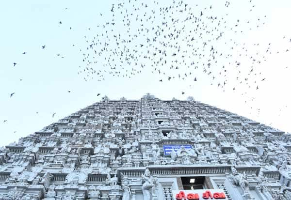 திருவண்ணாமலை அருணாசலேஸ்வரர் கோயில் அம்மணி அம்மன் கோபுர உச்சியில் ஏராளமான புறாக்கள் சுற்றி வருவது பார்ப்போரை பரவசத்தில் ஆழ்த்தியது.
