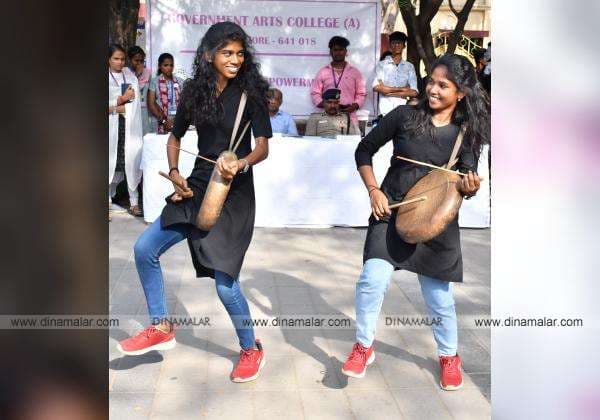 பெண் வன்கொடுமை தடுப்பது குறித்த தெரு நாடகம் கோவை ரேஸ் கோர்ஸ் பகுதியில் கோவை அரசு கலை கல்லூரி மாணவ, மாணவிகள் சார்பில் கலை நிகழ்ச்சிகள் நடந்தது.