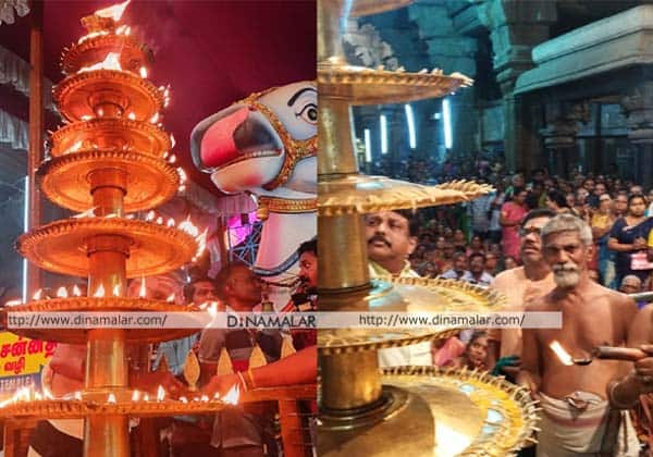திருநெல்வேலி நெல்லையப்பர் கோவிலில் இன்று பத்திர தீபம் ஏற்றப்பட்டது.