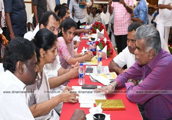 திருப்பூர், பாப்பீஸ் ஓட்டலில் தி.மு.க., தேர்தல் அறிக்கை தயாரிப்பு குழு தலைவர் எம்.பி., கனிமொழியிடம் ஏற்றுமதியாளர்கள் சங்க நிர்வாக தலைவர் சக்திவேல், மற்றும் தலைவர் சுப்பிரமணியன் பல்வேறு கோரிக்கை மனுவை கொடுத்தனர்.