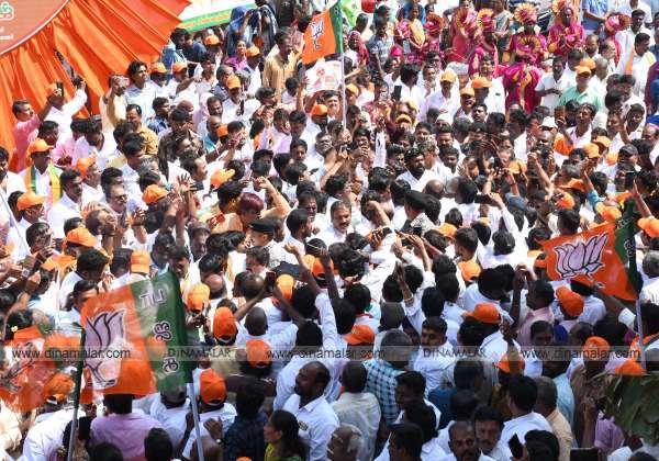 சென்னை, தண்டையார்பேட்டையில் உள்ள தனியார் மண்டபத்தில், வடசென்னை பா.ஜ., எம்.பி., தேர்தல் அலுவலகத்தை திறக்க வருகை புரிந்த தமிழக பா.ஜ., தலைவர் அண்ணாமலை தொண்டர்கள் வரவேற்றனர்.