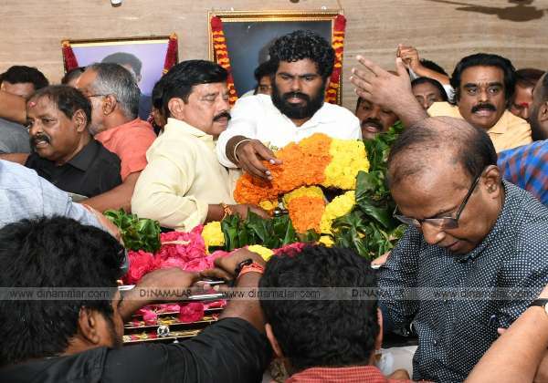 சைதை துரைசாமியின் உடலுக்கு அஞ்சலி செலுத்திய தலைவர்கள், பல்வேறு கட்சியினர் மற்றும் திரை பிரபலங்கள்.பாஜக மாநில தலைவர் அண்ணாமலை.இடம் : நந்தனம்.