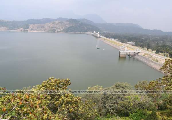 மரங்களால் சூழ்ந்து காணப்படும் உடுமலை அமராவதி அணையின் நீர்மட்டம் 77 அடியாக உள்ளது.