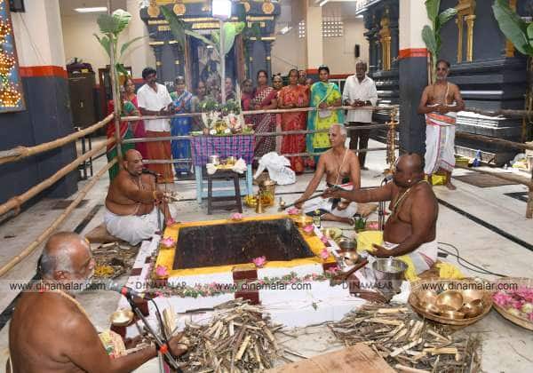 உடுமலை சவுந்திரராஜபெருமாள் கோவிலில் லட்சார்ச்சனையையொட்டி யாகசாலை பூஜை நடந்தது.