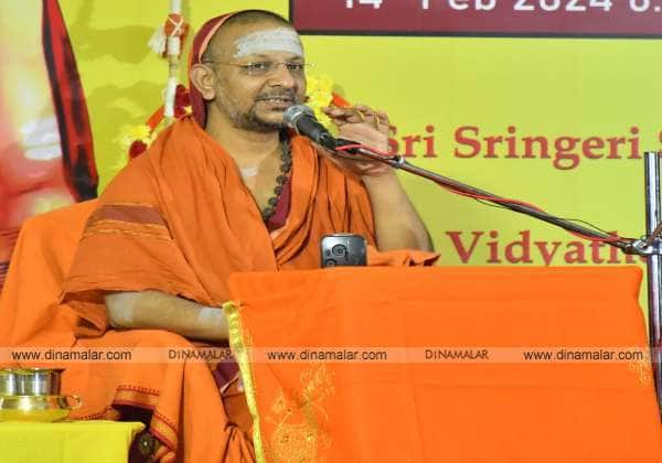 கோவை ரேஸ் கோர்ஸ் சாரதாம்பாள் கோவிலில் நடந்து வரும் சங்கர விஜயம் திருவிழாவில் ஸ்ரீ ஆதிசங்கரரும் நிலையான ஆனந்தமும் என்ற தலைப்பில் பூஜ்யஸ்ரீ மெணசரண தீர்த்த சுவாமி (நொச்சூர் ஆச்சார்யா) சொற்பொழிவாற்றினார்.