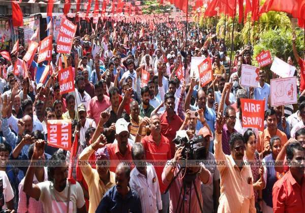 ரயில்வேயில் தனியார்மயமாக்கல் கூடாது, பழைய ஓய்வூதிய திட்டத்தை மீண்டும் அமல்படுத்த வேண்டும் உள்ளிட்ட பல்வேறு கோரிக்கைகள் வலியுறுத்தி எஸ்.ஆர்.எம்.யு., சார்பில், சென்ட்ரல் அருகே ஆர்ப்பாட்டம் நடைபெற்றது. இதில், 1000க்கும் மேற்பட்டோர் பங்கேற்றனர்.
