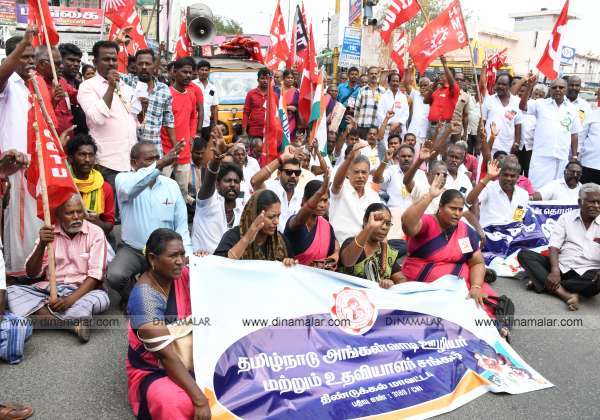 திண்டுக்கல்லில் மத்திய தொழிற்சங்கங்கள் ஐக்கிய விவசாயிகள் முன்னணி கூட்டமைப்பு சார்பில் மறியல் நடந்தது.