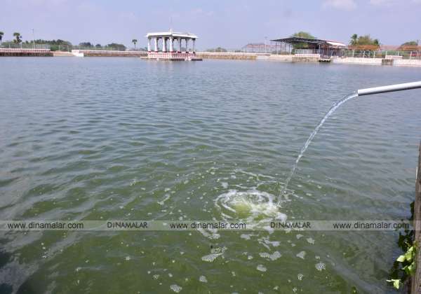 திருக்கோஷ்டியூர் சவுமிய நாராயண பெருமாள் கோயில் தெப்ப உற்சவம் நடைபெறும் குளத்திற்கு மோட்டார் மூலம் தண்ணீர் நிரப்பப்பட்டு வருகிறது.