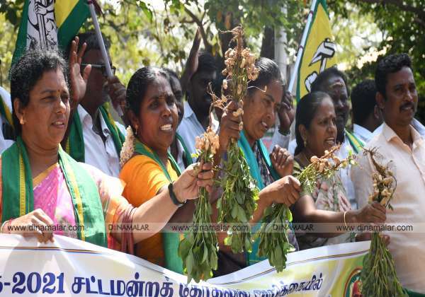 ரேஷன் கடையில் பாமாயிலுக்கு பதில் தேங்காய் எண்ணெய், கடலை எண்ணெய் கேட்டு நிலக்கடலை பயிர் உடன் விவசாயிகள் சென்னை ராஜரத்தினம் மைதானம் அருகே போராட்டத்தில் ஈடுபட்டனர்.