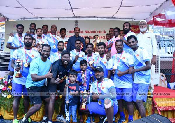 35வது அகில இந்திய அஞ்சல் துறைக்கான ஹாக்கி போட்டியில் வெற்றி பெற்ற தமிழக அணியினர். இடம் : எழும்பூர், சென்னை
