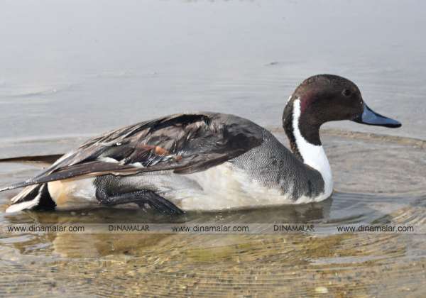 திருவள்ளூர் மாவட்டம் பொன்னேரி அருகே உள்ள அண்ணாமலைச்சேரி மீனவர் கிராமத்தில் பழவேற்காடு ஏரியில் பறவைகள் சரணாலயத்தில் மயங்கிய நிலையில் இருக்கும் வெளிநாட்டு பறவை.