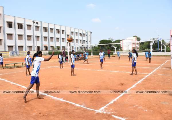 விழுப்புரம் அறிஞர் அண்ணா அரசு கலைக்கல்லூரியில் மாவட்ட அளவிலான வாலிபால் போட்டி நடந்தது.