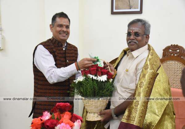 புதுச்சேரியில் புதிய தலைமைச் செயலாளராக பொறுப்பேற்ற சரத் சவுகான் சபாநாயகர் செல்வத்தை மரியாதை நிமித்தமாக சந்தித்தார்.