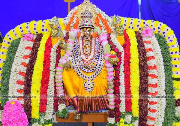 மாசித் திருவிழாவை முன்னிட்டு அலங்காரத்தில் திண்டுக்கல் கோட்டைமாரியம்மன்.