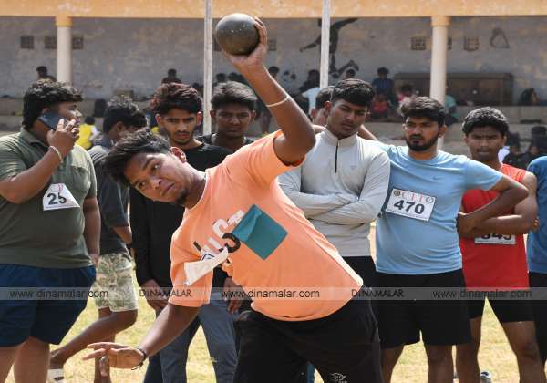 கோவை அவிநாசி ரோடு சி.ஐ.டி., கல்லூரி மைதானத்தில் நடந்த, குண்டு எறிதல் போட்டியில் திறமையை வெளிப்படுத்திய வீரர்.