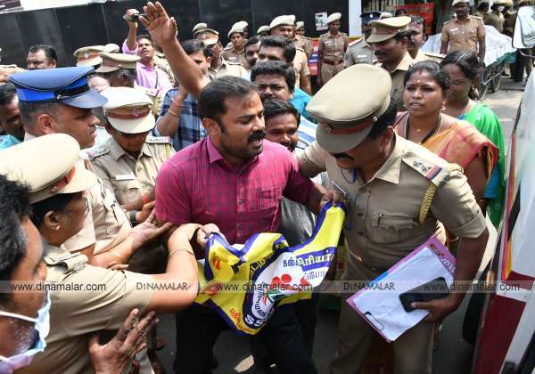 டி.பி.ஐ வளாகம் முற்றுகை போராட்டத்தில் ஈடுபட்டுள்ள இடைநிலை ஆசிரியர்களை கைது செய்த போலீசார். இடம் : நுங்கம்பாக்கம்.