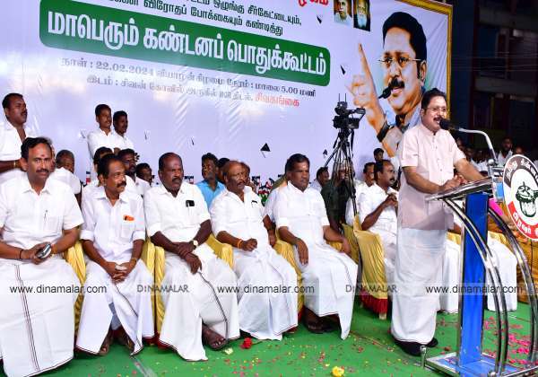 சிவகங்கையில் நடந்த அம்மா மக்கள் முன்னேற்றக் கழகம் சார்பில் கண்டன பொதுக்கூட்டத்தில் தினகரன் பேசினார்