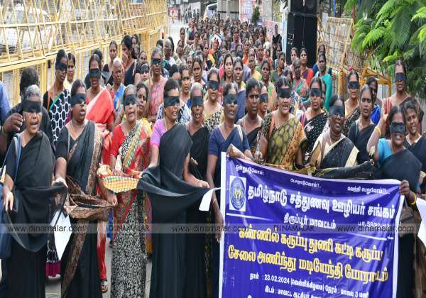 திருப்பூரில், பல்வேறு கோரிக்கைகள் வலியுறுத்தி தமிழ்நாடு சத்துணவு ஊழியர்கள் சங்கம் சார்பில் கண்ணில் கருப்பு துணி அணிந்தும், மடியேந்தியும் கலெக்டர் அலுவலகம் முன்பு ஆர்பாட்டத்தில் ஈடுபட்டனர்.