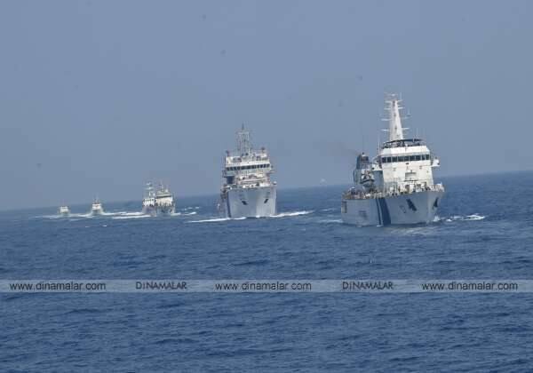 சென்னையில் இந்திய கடலோர காவல் படையின் பாதுகாப்பு ஒத்திகை நிகழ்வு நடைபெற்றது. நடுக்கடலில் ஒரே நேர்கோட்டில் ஆறு கப்பல்கள் அணிவகுத்து சென்றது பார்வையாளர்களை பெரிதும் கவர்ந்தது.