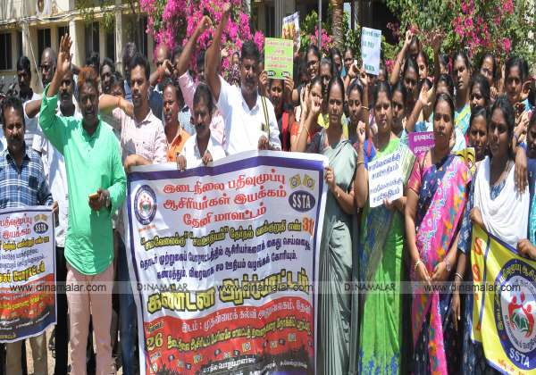 தேனி சி.இ.ஓ., அலுவலகம் முன் 3வது நாளாக சம வேலை சம ஊதியம் வழங்கக்கோரி இடைநிலை பதிவுமூப்பு ஆசிரியர் இயக்கம் சார்பில் ஆர்ப்பாட்டம் நடந்தது.