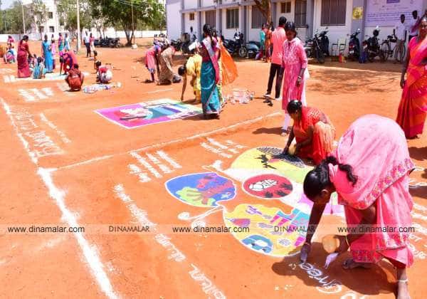 சிவகங்கையில் மகளிர் குழுவிற்கான பன்முக கலாச்சார கோலப்போட்டி நடைபெற்றது.