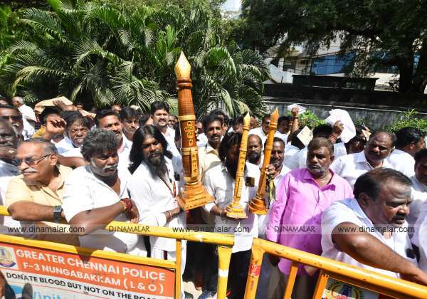 முதல்வர் ஸ்டாலினின் 71வது பிறந்தநாளை முன்னிட்டு, பேனா மாதிரியை பரிசாக அளிக்க வந்த தொண்டர்கள் . இடம்: தேனாம்பேட்டை