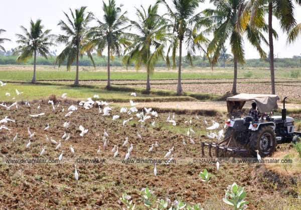 சிவகங்கை அருகே சாமியார் பட்டி பகுதியில் விவசாயிகள் கிணற்று பாசனத்தில் இரண்டாம் போக நெல் சாகுபடிக்காக உழவு பணியை தொடங்கி உள்ளனர். உழவு பணியின்போது வெளியாகும் புழு பூச்சிகளை உண்பதற்காக பறவைகள் கூட்டம் கூட்டமாக வருகிறது.