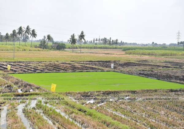 கோடை சாகுபடி நெல் பயிரிட நடப்பட்டுள்ள நாற்றுகள். இடம்: ராஜபாளையம், தெற்கு வெங்காநல்லூர்.