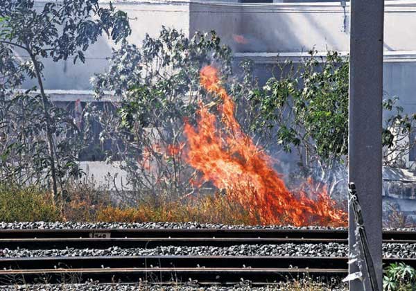 அருகில் ஒர் ஆபத்து!திருப்பூர், ஊத்துகுளி ரோட்டிலுள்ள, முதலாம் ரயில்வே கேட் பகுதியில் தண்டவாளத்துக்கு அருகே உள்ள காய்ந்த செடிகளுக்கு மர்ம நபர்கள் தீவைத்ததால், தீ கொளுந்து விட்டு எரிந்தது. ஆயிரக்கணக்கானோர் பயணிக்கும் ரயில் செல்லும் தண்டவாளம் அருகில் ஏற்படும் இதுபோன்ற தீ விபத்தை தடுக்க ரயில்வே போலீசார் மற்றும் அதிகாரிகள் உரிய நடவடிக்கை உடனடியாக எடுக்க வேண்டும்.