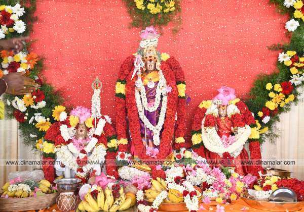 பொள்ளாச்சி மாரியம்மன் கோவில் திருவிழாவை முன்னிட்டு, திருக்கல்யாண உற்சவம் நடந்தது. இதில், பக்தர்களுக்கு அருள்பாலித்த அம்மன்.