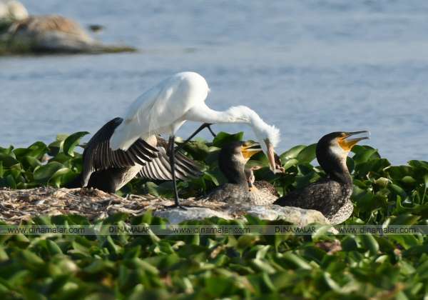வெயில் அதிகரிக்கும் நிலையில் பறவைகள் நீர்நிலைகளில் தஞ்சம் அடைந்து வருகிறது. இடம் திருப்பூர், நஞ்சராயன் குளம்.