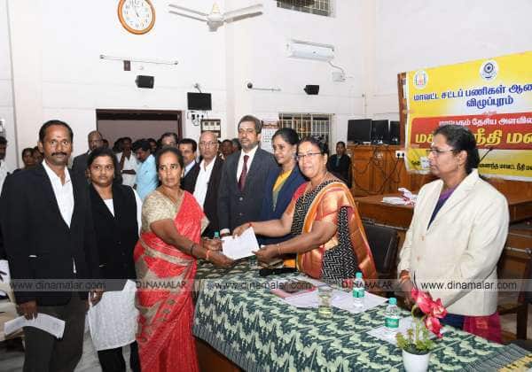 ஆணைவிழுப்புரம் நீதிமன்றத்தில் மாவட்ட சட்டப்பணிகள் ஆணைக்குழு சார்பில் நடந்த தேசிய மக்கள் நீதிமன்றத்தில் வழக்கில் தீர்வு கண்ட பயனாளிக்கு அதற்கான ஆணையை மாவட்ட முதன்மை அமர்வு நீதிபதி பூர்ணிமா வழங்கினார். அருகில் முன்னாள் அரசு வழக்கறிஞர் வேலவன். வழக்கறிஞர் அம்பிகா வேலவன்.